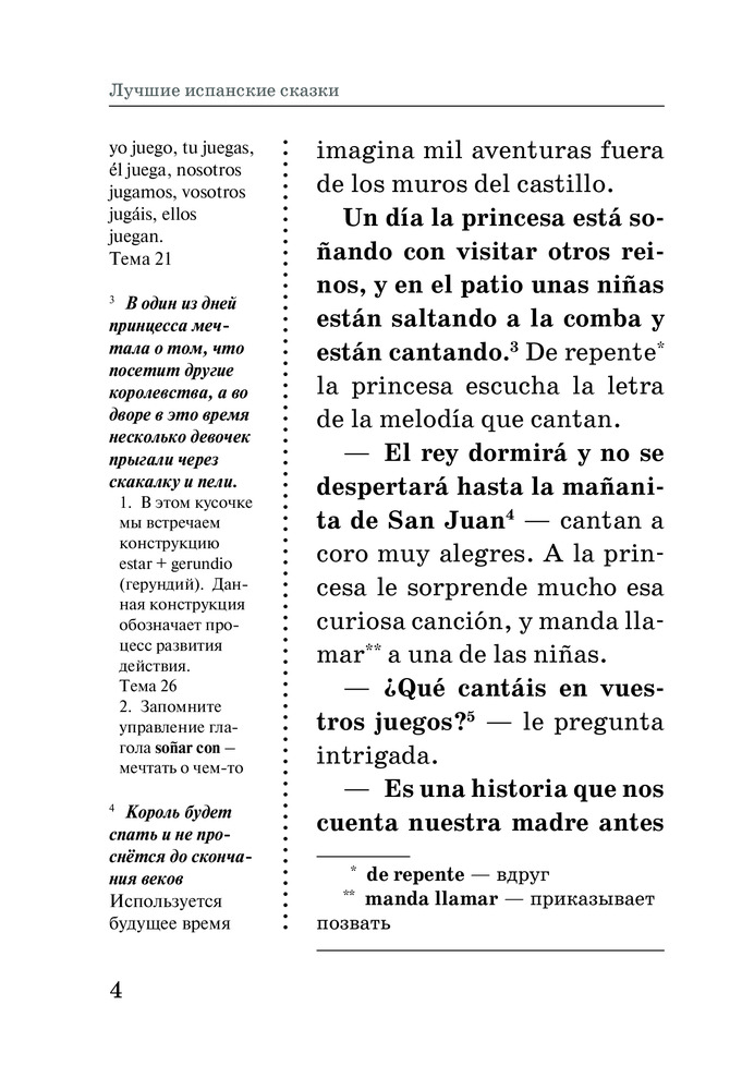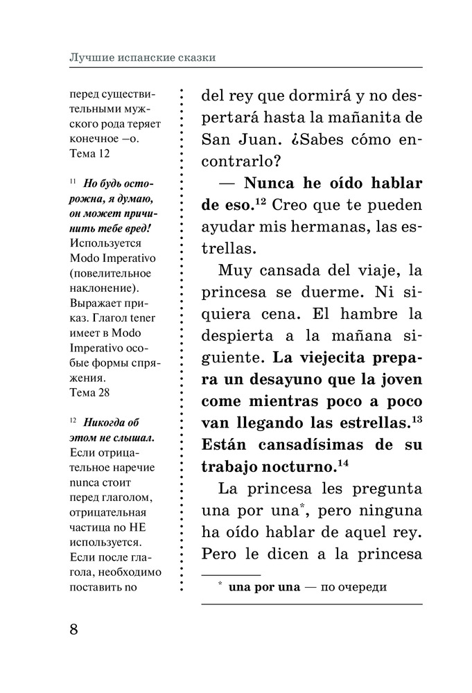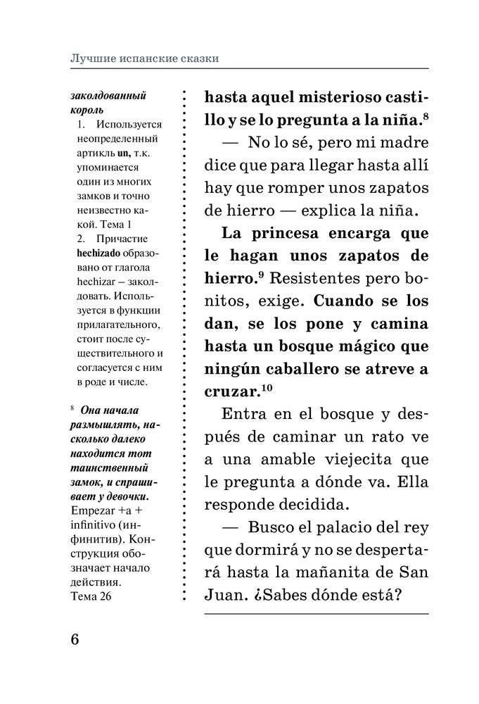 Предлагаем учить испанский язык вместе с увлекательными испанскими сказками. Тексты сказок снабжены подробным лексико-грамматическим комментарием, расположенным на полях, с отсылками на соответствующее правило грамматики. Грамматический справочник следует сразу за сказками. Справочником можно пользоваться и как отдельным пособием.
