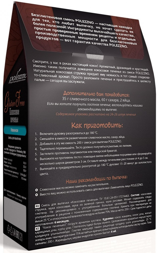Polezzno Смесь для выпечки «Кокосовое печенье»В данный момент этот товар отсутствует в продаже. Возможно, у нас найдется аналогичный или похожий товар здесь. Смотрите, у Вас в руках настоящий кокос! Ароматный, дразнящий и хрустящий. Именной таким получается домашнее кокосовое печенье из смеси Polezzno. Натуральная кокосовая стружка придает ему нежность и тот самый сладковато-сливочный аромат. Просто разломите печенье и прислушайтесь к шелесту пальм. |