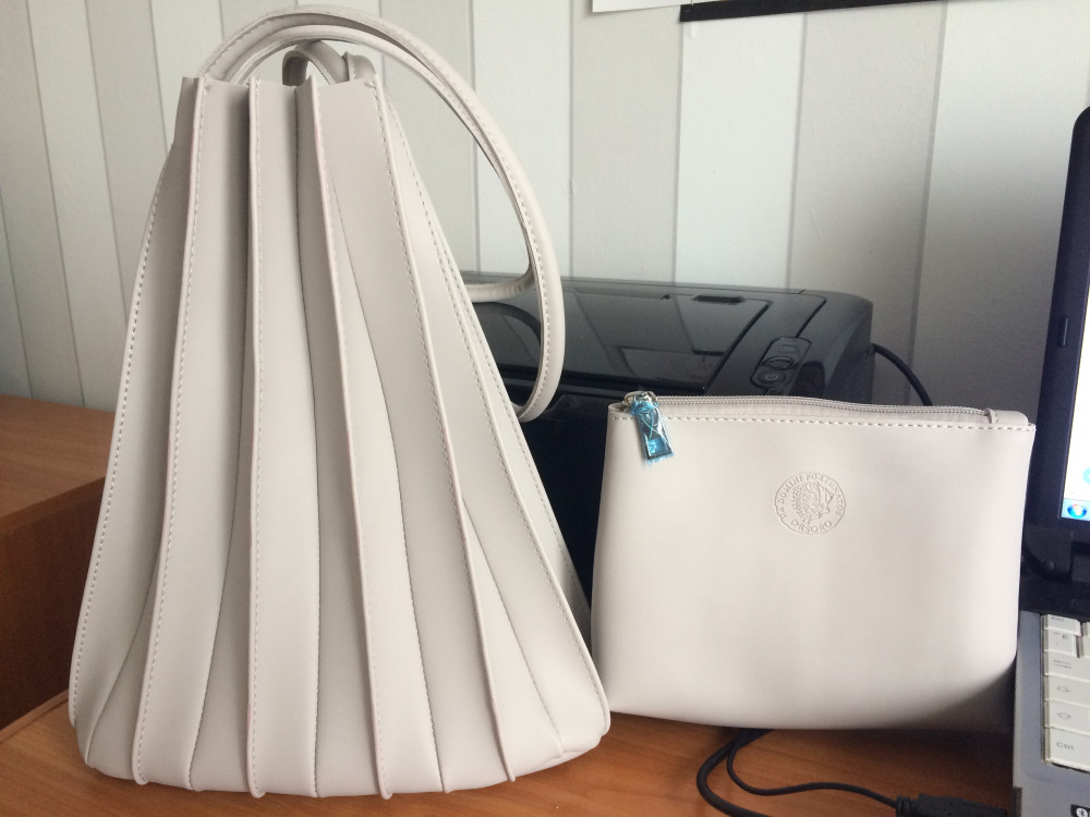 Сумочка понравилась сразу, как увидела, необычного дизайна и исполнения, плюс кошелек. Моя бежевая цветом.