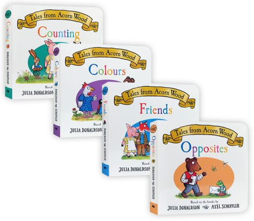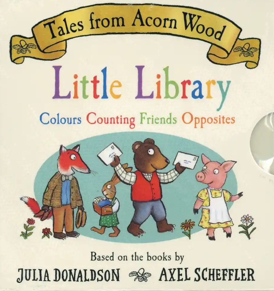 Join Fox, Pig, Rabbit, Bear and all their friends in the Tales From Acorn Wood Little Library, including four early learning books based on the bestselling preschool series by Julia Donaldson and Axel Scheffler, creators of the modern classic The Gruffalo. Learn all about playing together and helping each other in Friends, spot Bears red waistcoat, Foxs blue socks and the yellow flowers in Rabbits garden in Colours, find out whos awake and whos asleep in Opposites — and then in Counting, count from one Pig playing hide-and-seek to ten friends enjoying a sunny picnic in Acorn Wood! These four fun and sturdy board books are brought together in a miniature box that is just right for little hands — the perfect gift for toddlers.