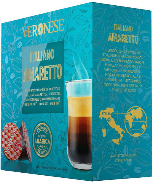 Veronese Кофе «Amaretto»В данный момент этот товар отсутствует в продаже. Возможно, у нас найдется аналогичный или похожий товар здесь. Воплощение лучших традиций итальянского кофе, с тонким ароматом миндального ореха, гармоничным вкусом с нотками шоколада и карамели — истинное удовольствие для всех ценителей кофе. Для приготовления кофе рекомендованный объем воды — 50 мл (2 деления). |