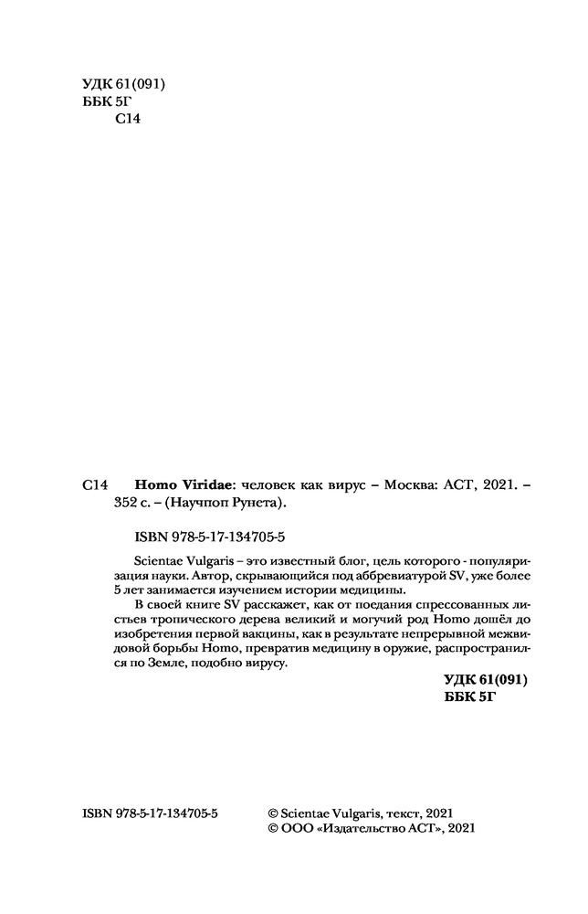 Серия: Научпоп Рунета Scientae Vulgaris — это известный блог, цель которого — популяризация науки. Автор, скрывающийся под аббревитатурой SV, уже более 5 лет занимается изучением истории медицины. |