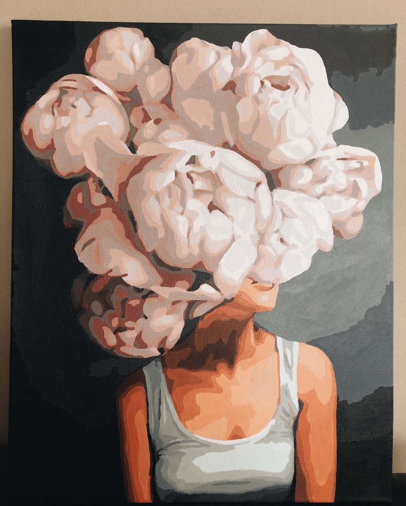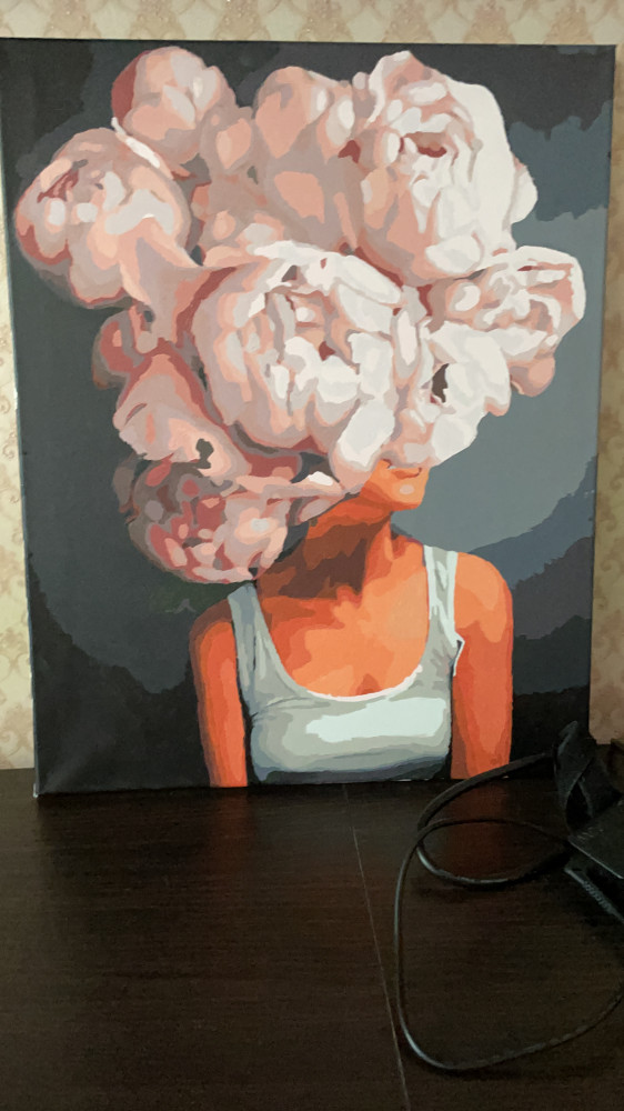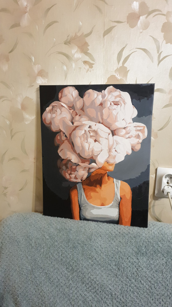 Все понравилось, кроме, немного был перекошен холст. И цветовая гамма тёмная, цветы уходят в теракот, фон в чёрный.