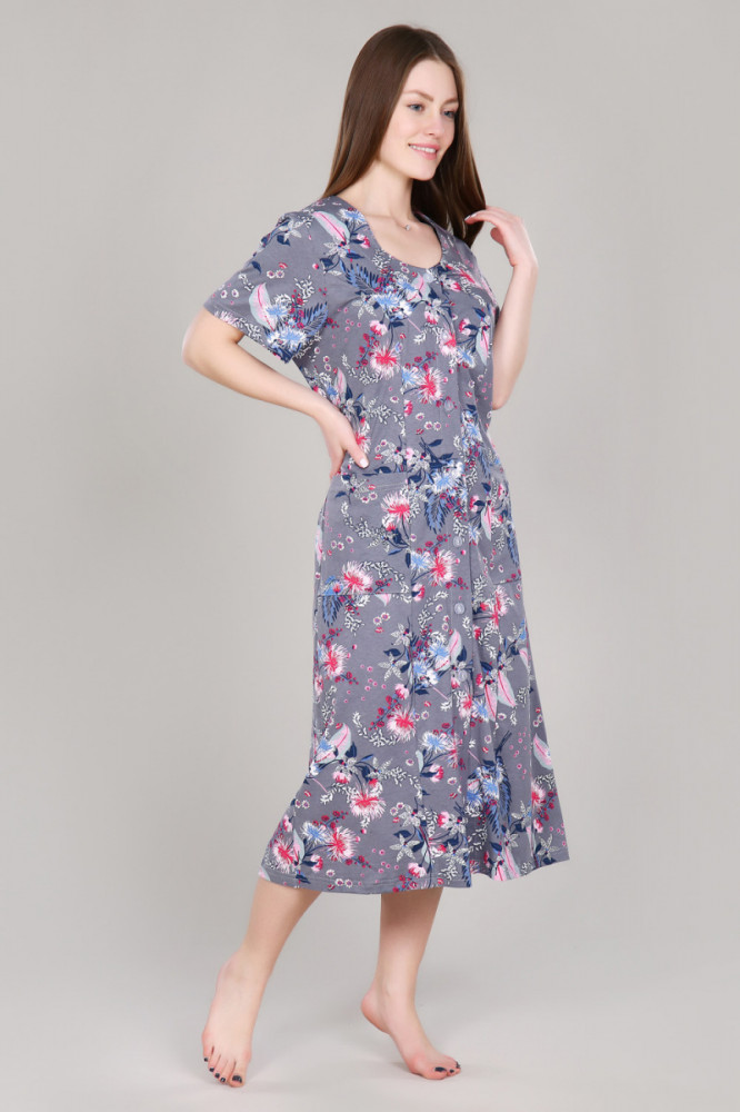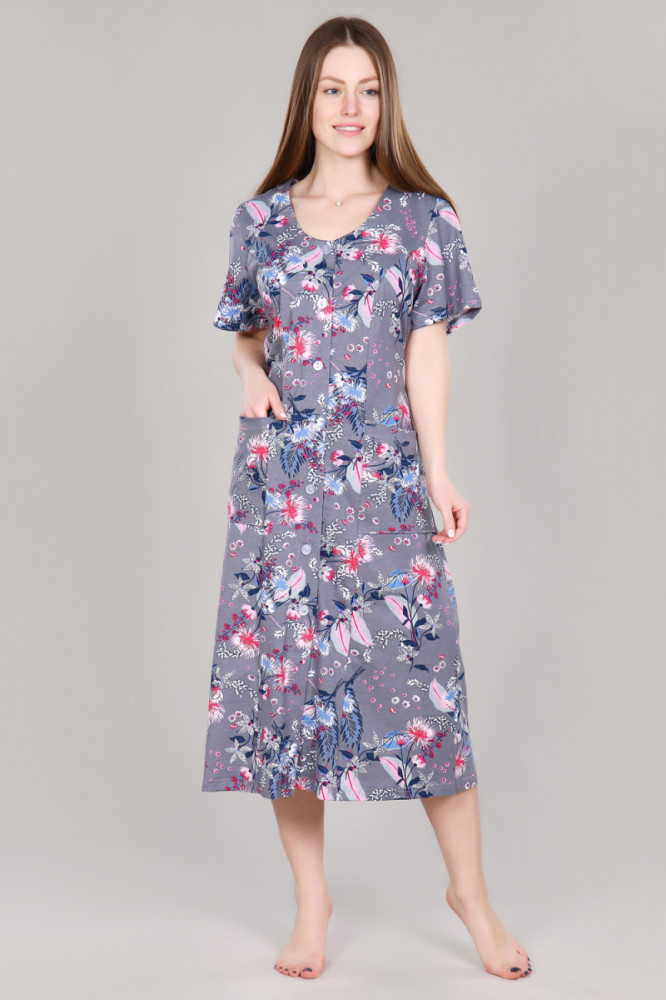 Халатик чудесный, тонкий трикотаж, расцветка спокойная ,идет в размер, мне очень понравился