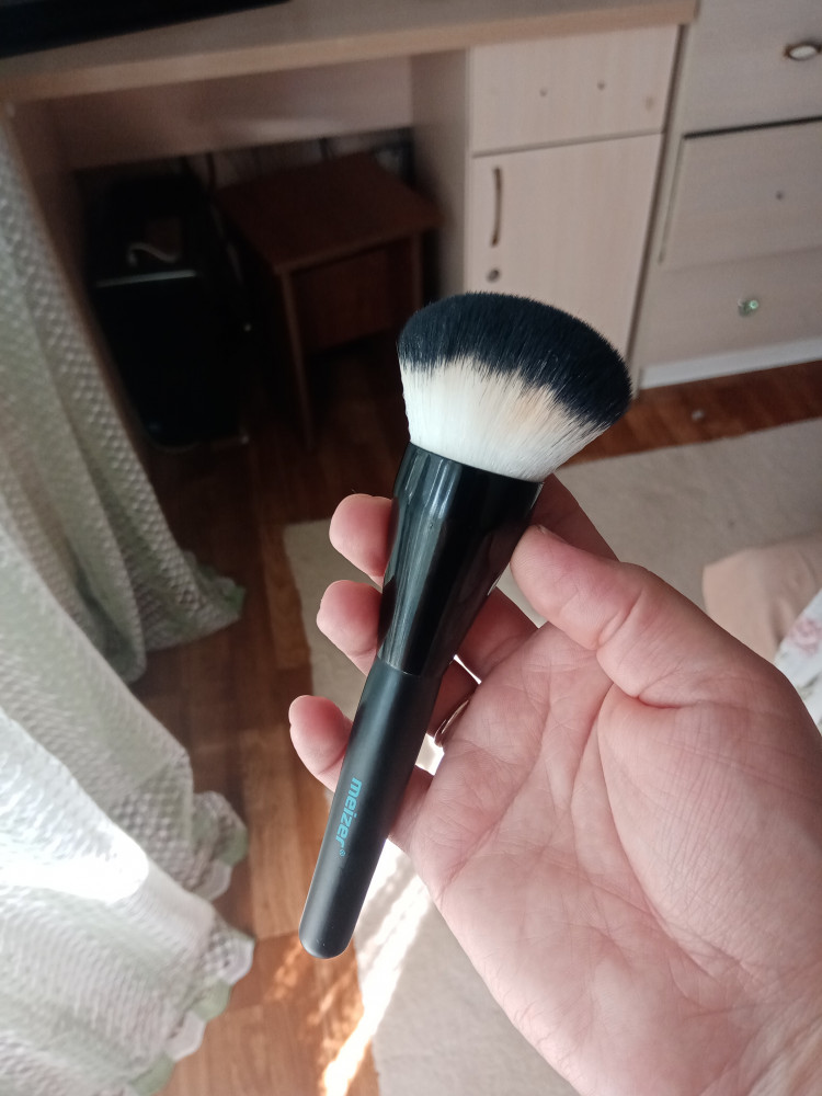 Хорошая щеточка, мягкая. Равномерно наносит пудру на лицо. Приятная при пользовании.