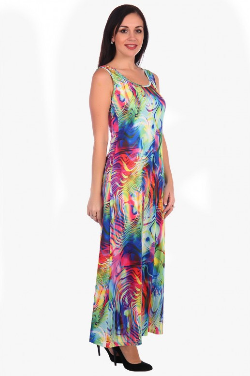 Красивое платье из "масла". У меня есть похожее платье из такого же материала, приобретённое на Флип. Платье идёт в размер, длина как у модели на фотографии. Летом в нём будет комфортно. Порадовала цена и сроки доставки