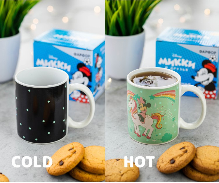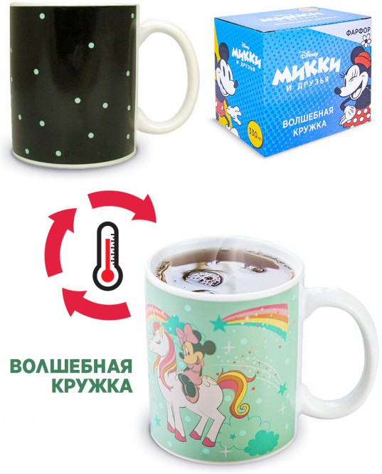 Серия: Минни и Микки Маус Термокружка с изображением героев мультфильма Микки и Минни — с магическим эффектом, как и положено миру сказки от Дисней! Для того, чтобы кружка поменяла цвет — просто добавь горячей жидкости (рекомендуемая температура от 80С). Картинка начинает проявляться буквально через пару секунд, а в течение минуты она проявится полностью. Когда кружка остынет, магия исчезнет вместе с проявившейся картинкой. |