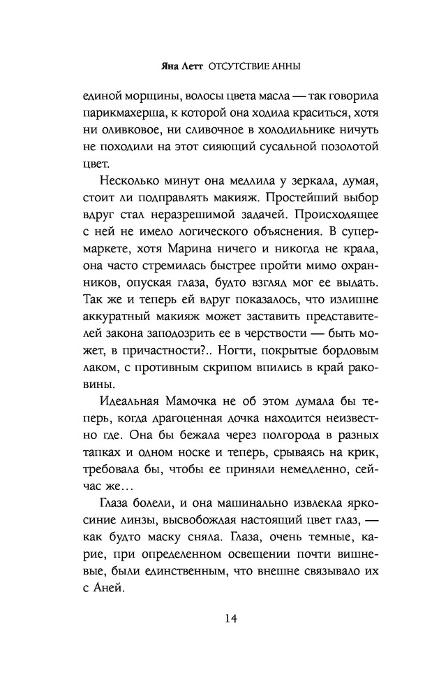В данный момент этот товар отсутствует в продаже. Возможно, у нас найдется аналогичный или похожий товар здесь. Серия: Universum. Магический реализм Яны Летт Жизнь Марины разделилась на до и после, когда исчезла дочь. Анна просто не вернулась домой.
