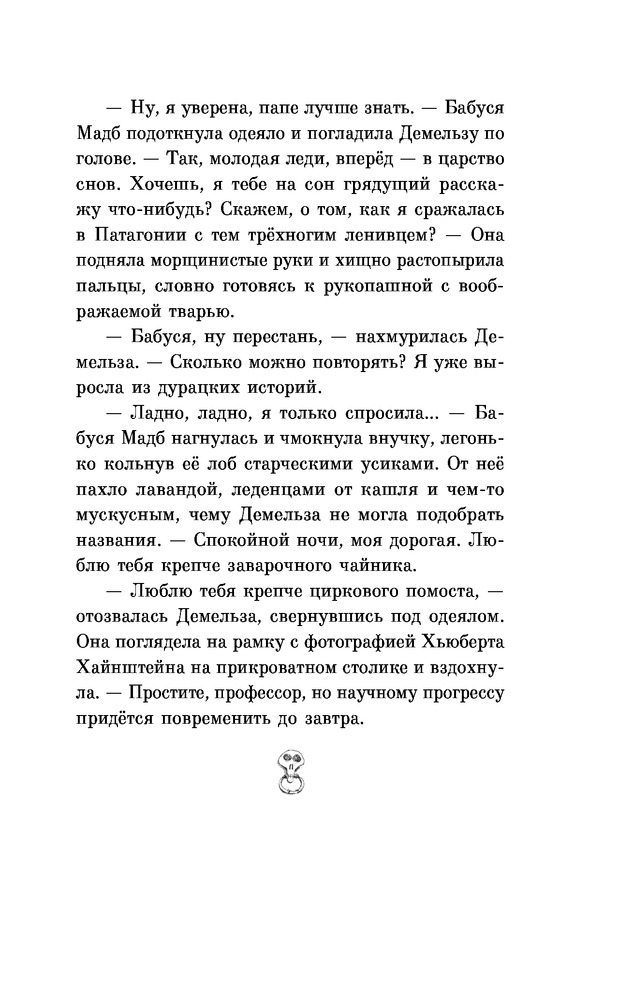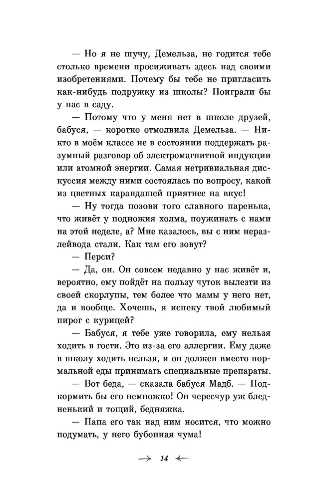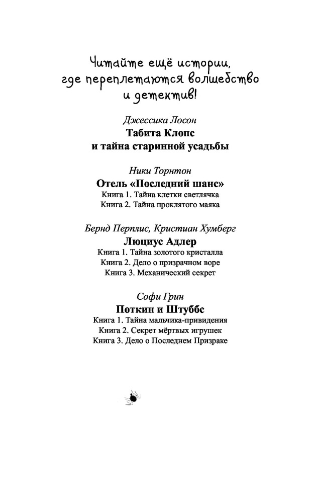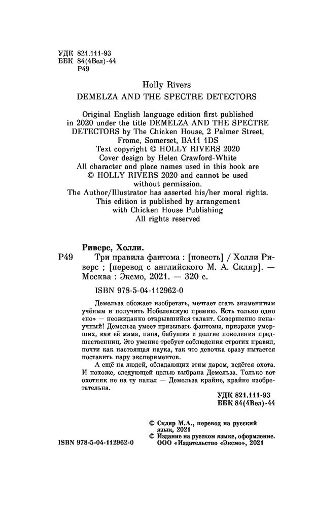 💳 Оплатить за товар можно при получении 🇰🇿 Есть бесплатная доставка по Казахстану 🎁 Копите бонусы с каждой покупки Серия: Детск. Фэнтези-детектив Демельза обожает изобретать, мечтает стать знаменитым учёным и получить Нобелевскую премию. Есть только одно «но» — неожиданно открывшийся талант. Совершенно ненаучный! Демельза умеет призывать фантомы, призраки умерших, как её мама, папа, бабушка и долгие поколения предшественниц. Это умение требует соблюдения строгих правил, почти как настоящая наука, так что девочка сразу пытается поставить пару экспериментов. |
