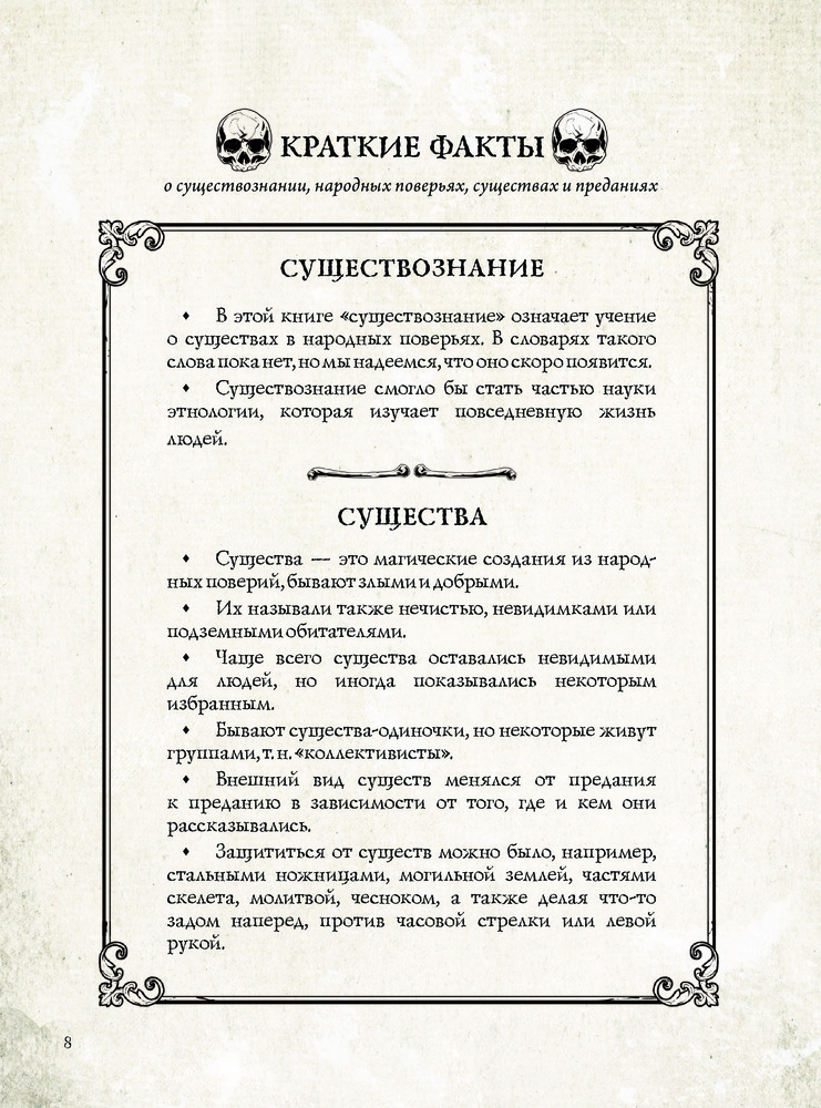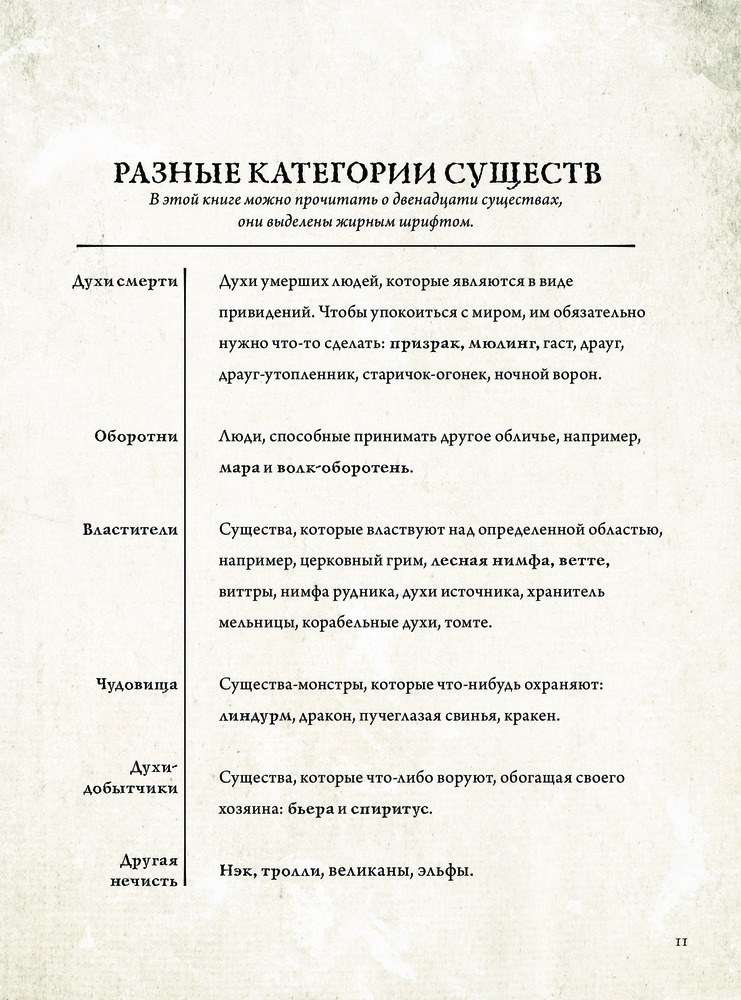 Любителям жанра будет интересно. Это именно справочник где расписано к какой категории относится существо, какого пола, прописано описание и т.д. Рядом с описанием иллюстрация существа на всю страницу и следом пишется придание. В общем мне очень понравилось
