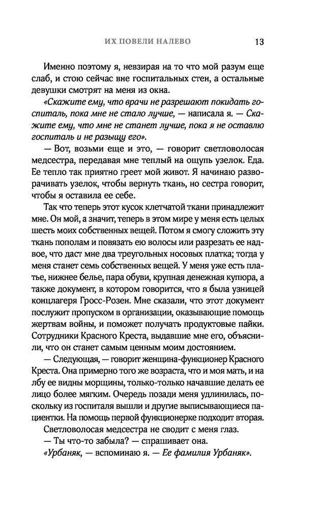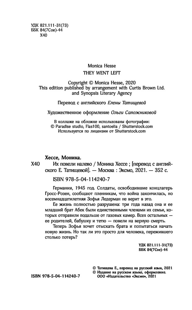 Их повели налевоВ данный момент этот товар отсутствует в продаже. Возможно, у нас найдется аналогичный или похожий товар здесь. Серия: Young Adult. Трагическая Моника Хессе Германия, 1945 год. Солдаты, освободившие концлагерь Гросс-Розен, сообщают пленникам, что война закончилась, но восемнадцатилетняя Зофья Ледерман не верит в это. Ее жизнь полностью разрушена: три года назад она и ее младший брат Абек были единственными членами их семьи, которых отправили подальше от газовых камер. Всех остальных — ее родителей, бабушку и тетю — повели на верную смерть. |