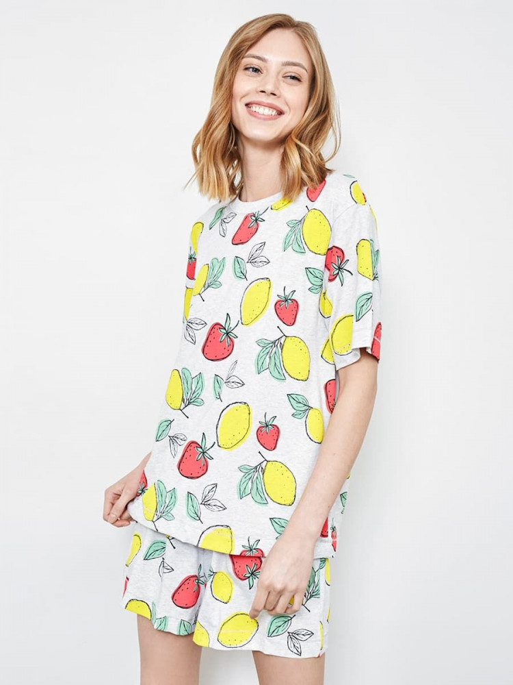Пижама яркая летняя, после стирки не села, не деформировалась. Гладится хорошо, к утюгу не прилипает. Единственный недостаток - несоответствие в стиле ежду верхом и низом. Верх - глухая широкая майка с рукавами до локтя. логично было бы к ней сшить низ типа бермуды. А здесь шорты-бикини, к которым был бы логичен топ, что было бы идеальным комплектом на жаркое лето. Но это придирки уже.