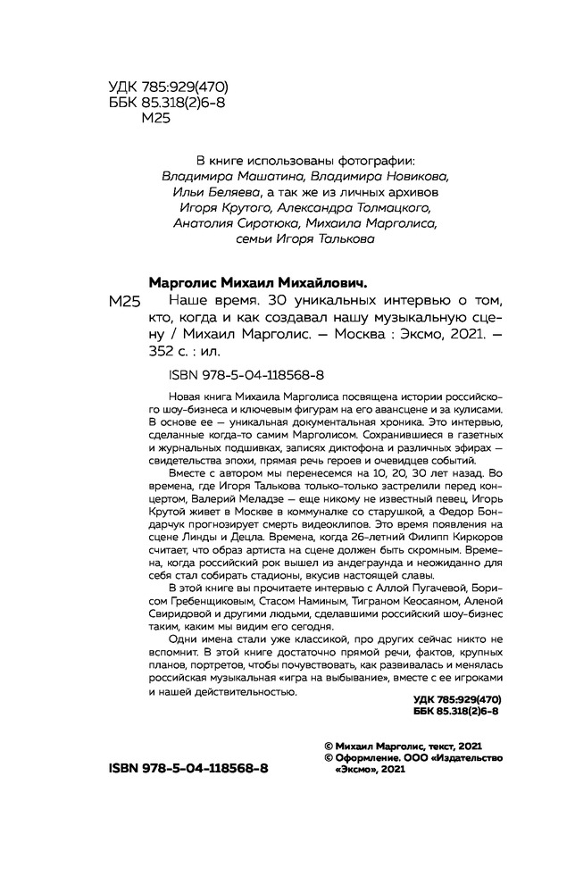 💳 Оплатить за товар можно при получении 🇰🇿 Есть бесплатная доставка по Казахстану 🎁 Копите бонусы с каждой покупки Серия: Подарочные издания. Музыка Новая книга Михаила Марголиса посвящена истории российского шоу-бизнеса и ключевым фигурам на его авансцене и за кулисами. В основе ее — уникальная документальная хроника. Это интервью, сделанные когда-то самим Марголисом. Сохранившиеся в газетных и журнальных подшивках, записях диктофона и различных эфирах — свидетельства эпохи, прямая речь героев и очевидцев событий. |