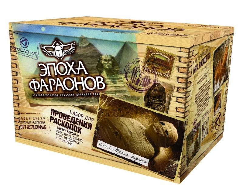 Фантазер Набор для проведения раскопок «Мумия Фараона»В данный момент этот товар отсутствует в продаже. Возможно, у нас найдется аналогичный или похожий товар здесь. Серия: Археология. Эпоха фараонов Эта старинная тайная посылка путешествовала по миру более 70 лет и, наконец, попала в ваши надежные руки!В этой коробке находится уникальный археологический набор, содержащий пласт окаменелой земной породы с настоящей копией артефакта Древнего Египта.Внутри вы также найдете специальные археологические инструменты, старинные открытки с места раскопок, записи археолога, красочную инструкцию, раскрывающую тайну процесса раскопок в увлекательной игровой форме. |