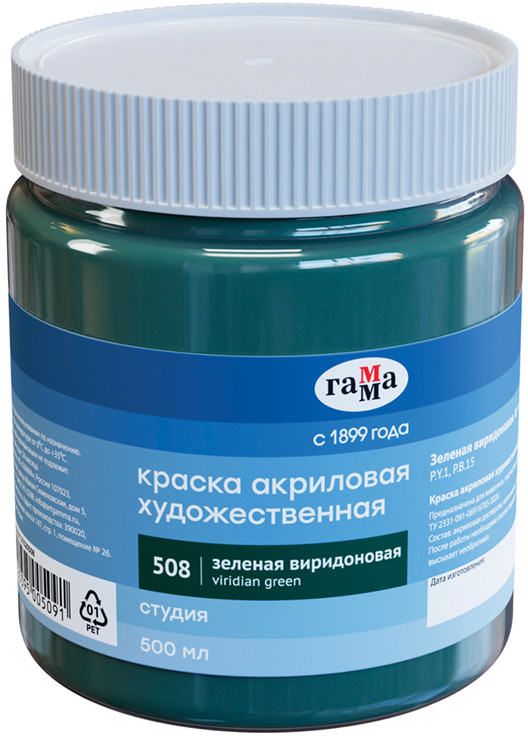 Гамма Краска акриловая художественная, 508 зеленая виридоновая
