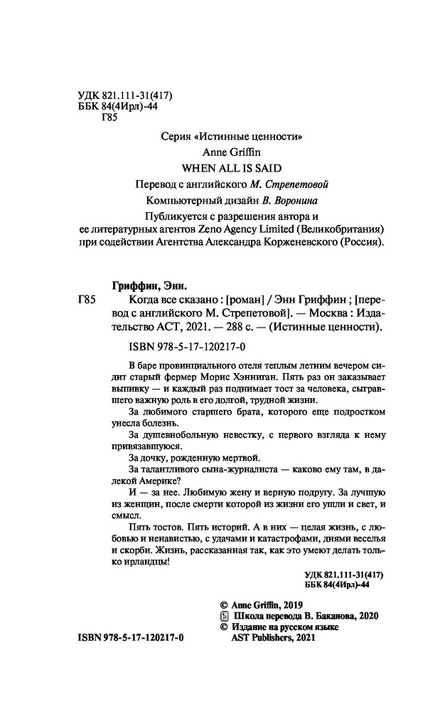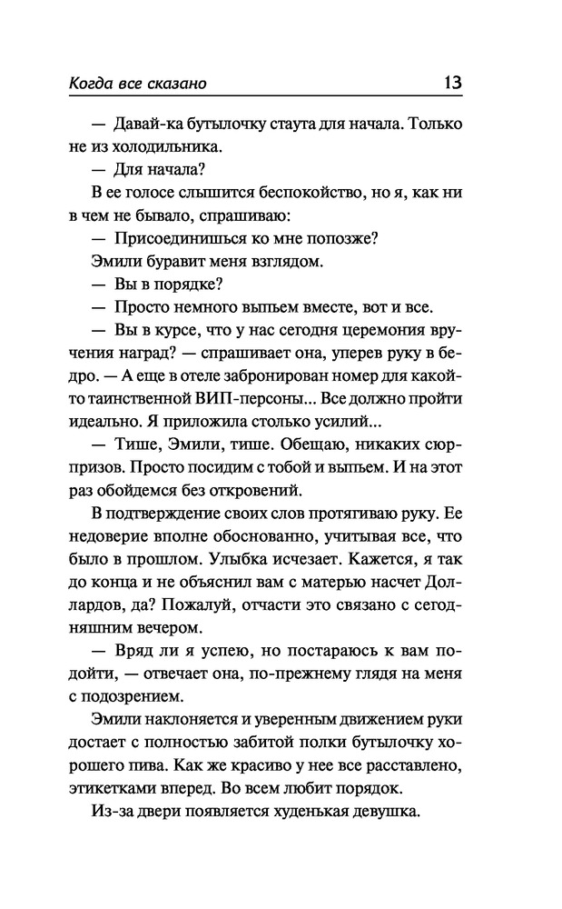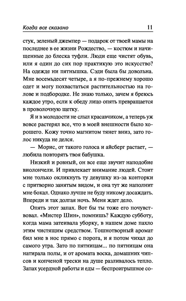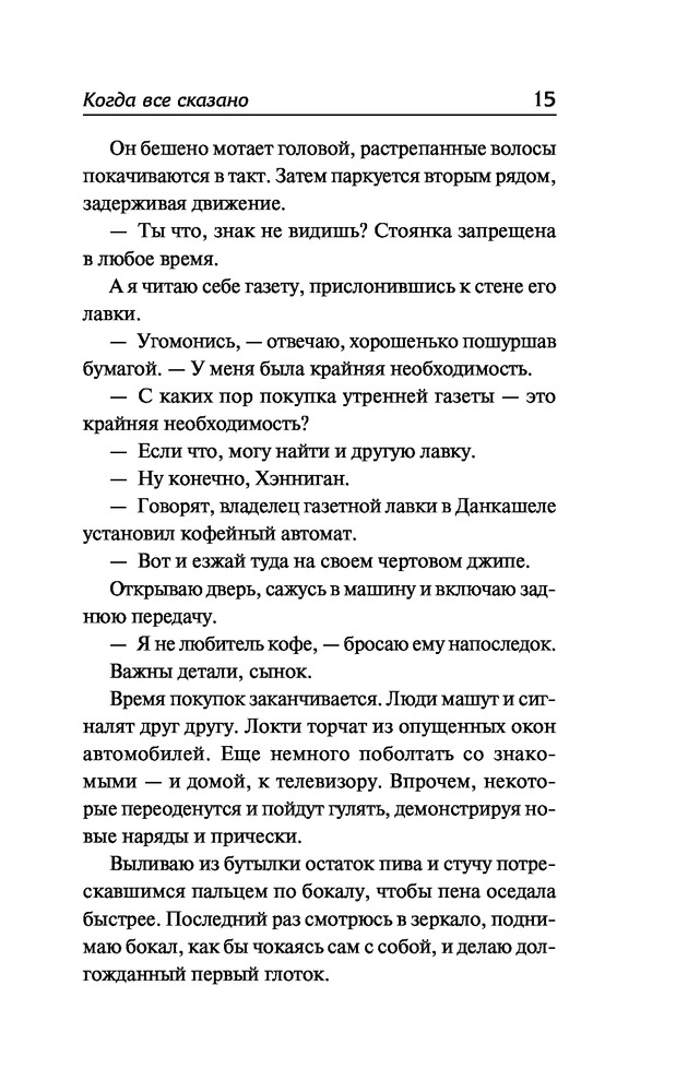 Когда все сказаноВ данный момент этот товар отсутствует в продаже. Возможно, у нас найдется аналогичный или похожий товар здесь. Серия: Истинные ценности В баре провинциального отеля теплым летним вечером сидит старый фермер Морис Хэнниган. Пять раз он заказывает выпивку — и каждый раз поднимает тост за человека, сыгравшего важную роль в его долгой, трудной жизни. |