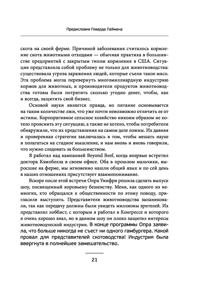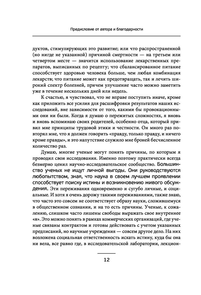 Правила еды. Передовые идеи в области питания, которые позволят предотвратить распространенные заболеванияВ данный момент этот товар отсутствует в продаже. Возможно, у нас найдется аналогичный или похожий товар здесь. Серия: Сила питания Большинство из нас считает, что животный белок полезен и его нечем заменить. Но имеет ли это убеждение реальные основания? Доктор Кэмпбелл, ученый-новатор и влиятельнейший специалист в области нутрициологии, когда-то перевернул это представление. Его наблюдения, опубликованные в «Китайском исследовании», поразили весь мир и стали предметом большой дискуссии. В своей новой книге «Правила еды» он пошел еще дальше и еще глубже исследовал аспекты и преимущества цельной растительной пищи. Эта книга — альтернативная точка зрения на устоявшиеся правила здорового питания и фундаментальный труд по нутрициологии. Ее автор предлагает каждому переосмыслить пищевые привычки, руководствуясь не популярными мифами и устаревшими догмами, а научно доказанной базой знаний. Он рассматривает историю возникновения заболеваний и методы их лечения, анализирует нынешнее состояние индустрии питания и определяет основные правила диеты, основанной на цельных растительных продуктах. И, главное, объясняет, как при помощи такого рациона можно уберечься от рака, болезней сердца и сосудов и диабета. Какой баланс веществ нужно соблюдать, чтобы питание было действительно правильным? Почему суперфуды — это не панацея? Как сложился культ белка, и чем он обернулся для современного общества? Что такое принцип холизма в питании? На эти и другие важные вопросы доктор Кэмпбелл подробно отвечает в этой удивительной книге, искренне надеясь, что в будущем люди смогут дольше оставаться здоровыми, вести полноценную жизнь и наслаждаться своим долголетием. |