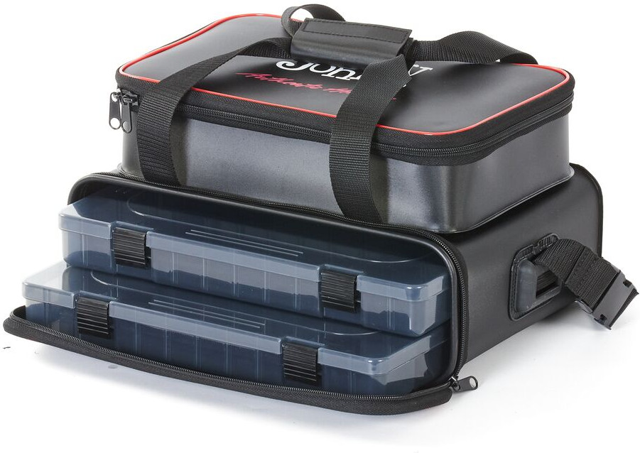 Серия: Pro Series Сумка для спиннинговой ловли из материала EVA. Состоит из двух отделений. Верхнее отделение фиксируется к нижнему с помощью липучки, и при необходимости его можно снять. Нижнее отделение укомплектовано двумя пластиковыми коробками для хранения приманок и оснасток. Не пропускает воду! Легко моется. |