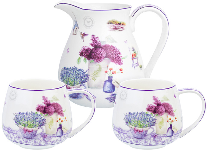 Серия: Лаванда Кувшин серии «Лаванда» — прекрасная альтернатива скучным пакетам сока и пластиковым бутылкам. Кувшин выполнен из высококачественного костяного фарфора нового поколения, благодаря современным технологиям фарфор New Bone China не уступает традиционному костяному фарфору в прозрачности, белизне и прочности, но при этом гораздо экологичнее в производстве. Кувшин легкий, вместительный, изящной формы, с удобной ручкой и нежным рисунком с особенным летним настроением — цветы лаванды как будто приносят нежный аромат и наполняют кухню атмосферой Прованса. В наборе также есть две кружки. |