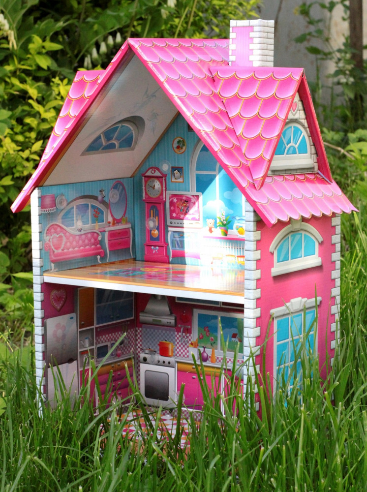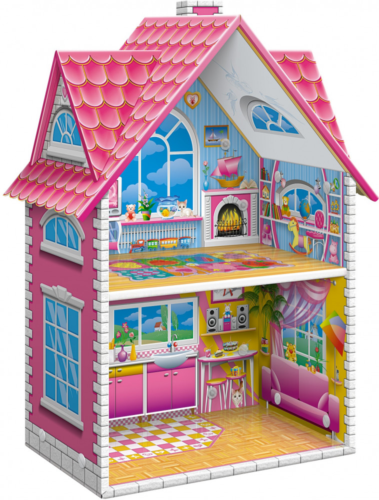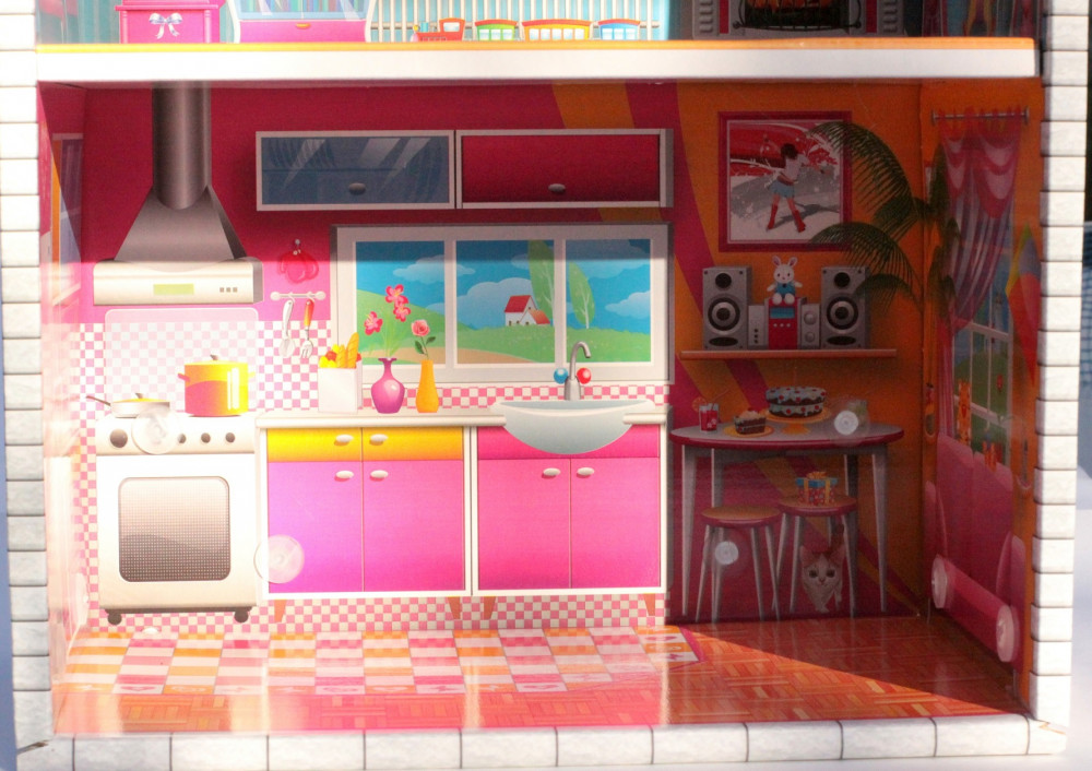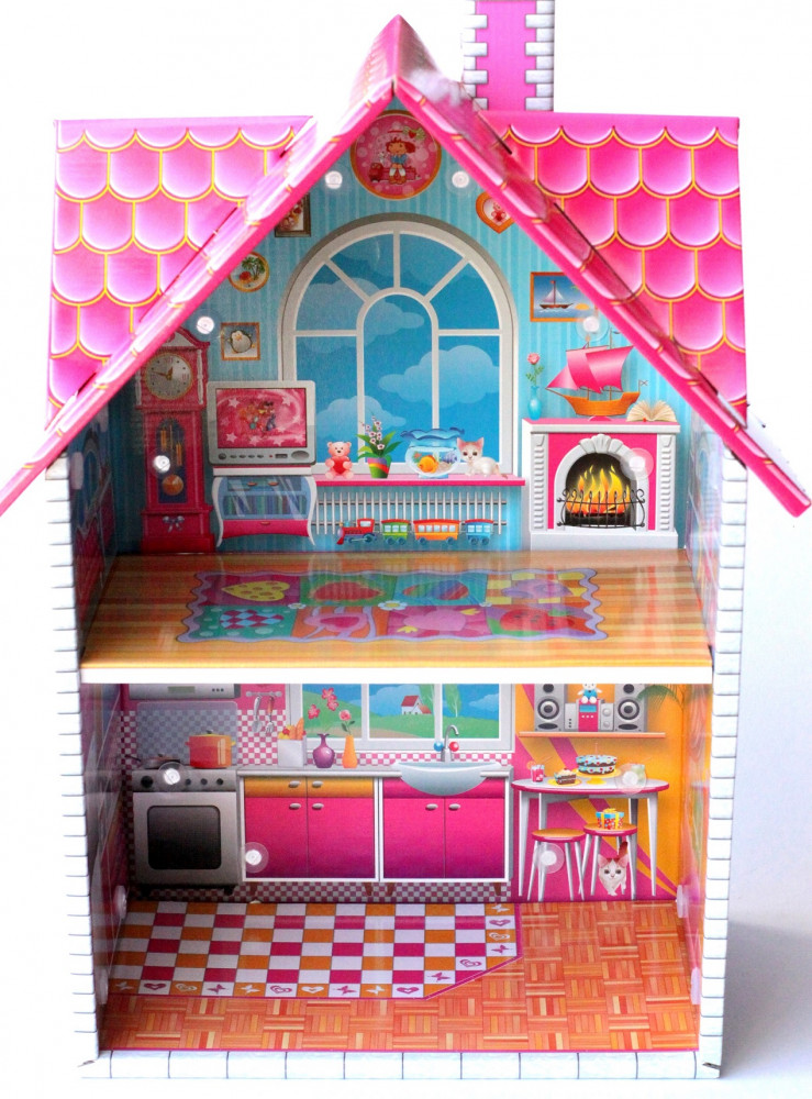 Изделие выполнено из ламинированного картона толщиной 2 мм. Рекомендуемый размер игрушек для домика — до 18 см. Куклы и аксессуары, изображенные на упаковке, в комплект не входят. Вы можете купить их дополнительно на нашем сайте.