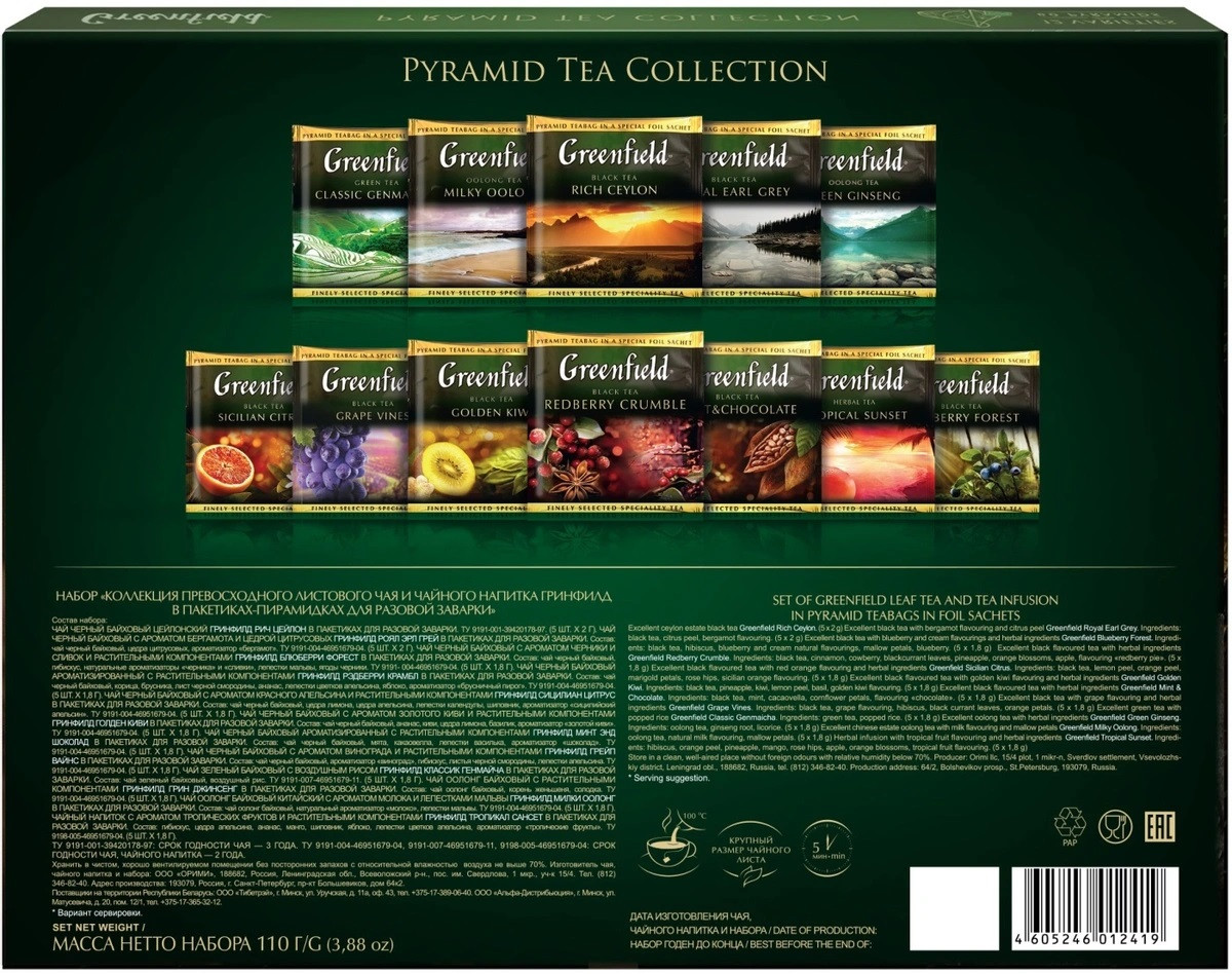 Greenfield Набор чая подарочныйВ данный момент этот товар отсутствует в продаже. Возможно, у нас найдется аналогичный или похожий товар здесь. Серия: Коллекция пирамидок В каждой пирамидке Greenfield — индивидуальная порция листового чая для заваривания прямо в чашке. Размер чайного листа в пирамидке специально подобран так, чтобы эффект заваривания и глубина экстракции соответствовали лучшим образцам элитных крупнолистовых сортов |