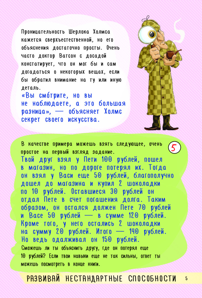 Серия: 250 лучших Эта книга поможет тебе не только весело, но и с пользой провести время. Здесь столько всего интересного: секреты сыскного дела от знаменитого Шерлока Холмса, увлекательные научные опыты, захватывающие истории о пиратах, викингах и драконах, инструкции по изготовлению простых, но и полезных поделок, а главное — множество головоломок, хитроумных задачек, запутанных лабиринтов и других занимательных заданий. Листая страницы книги, ты узнаешь много нового, сможешь «прокачать» свой мозг, развить логическое мышление, память, внимательность и даже дедуктивные способности. И при этом, поверь, скучно не будет! |