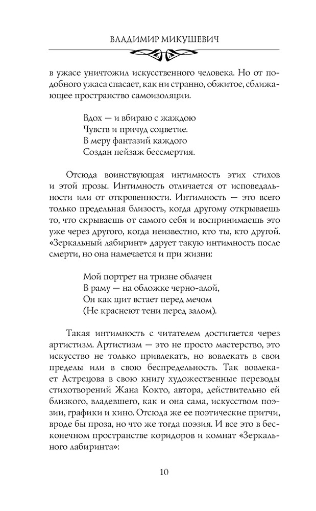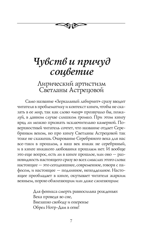 Зеркальный лабиринтСветлана Константиновна Астрецова В данный момент этот товар отсутствует в продаже. Возможно, у нас найдется аналогичный или похожий товар здесь. Серия: Стихи Рунета Новая книга Светланы Астрецовой обладает свойством, не так уж часто встречающимся в современной поэзии: она, подобно лабиринту, вовлекает в себя читателя. В сборник вошли авторские стихотворения, притчи и рисунки, а также переводы поэзии Жана Кокто. |