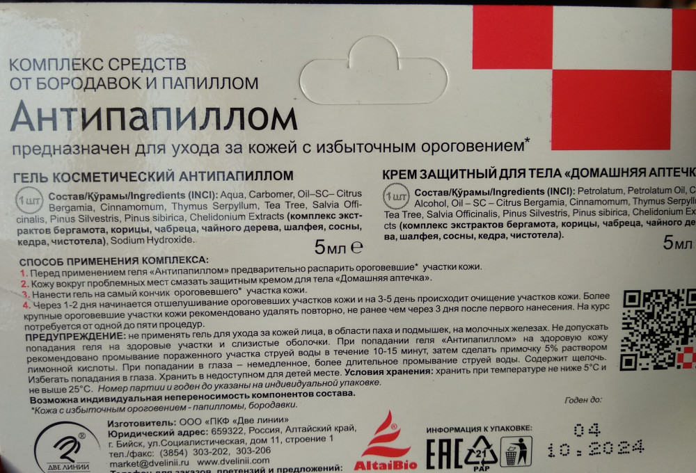 Гель работает, даже с первого применения! Защитным кремом, который в наборе, мажьте от души все вокруг очень тщательно, так как жжёт невероятно. Реально выдержать несколько секунд, но и их хватает, чтобы папиллома ушла быстро.