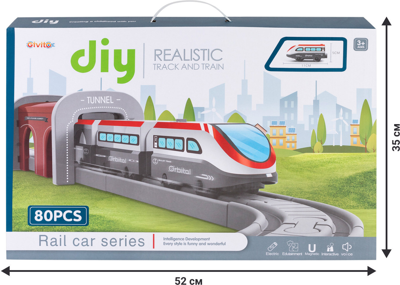 Все элементы комплекта совместимы с другими сборными моделями железной дороги «Givito». Юный машинист сможет прокладывать различные маршруты, строить новые станции и придумывать уникальный ландшафт.
