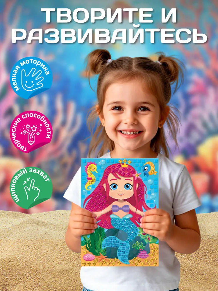 Аппликация — набор для творчества для детей от 3-х лет. Украшайте картинку самоклеящимися квадратиками, развивайте моторику пальчиков и стимулируйте творческие способности ребёнка. Подберите квадратик по цвету. Отделите самоклеящейся квадратик от блока. Приклейте квадратик на картонную основу, на соответствующее его цвету место. |