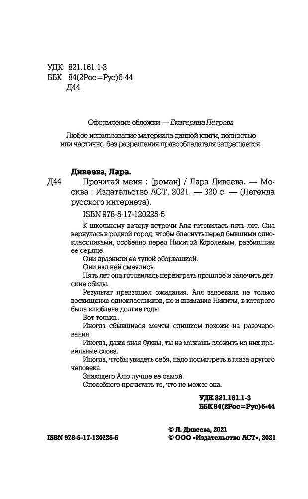 Серия: Легенда русского Интернета К школьному вечеру встречи Аля готовилась пять лет. Она вернулась в родной город, чтобы блеснуть перед бывшими одноклассниками, особенно перед Никитой Королевым, разбившим ее сердце. |