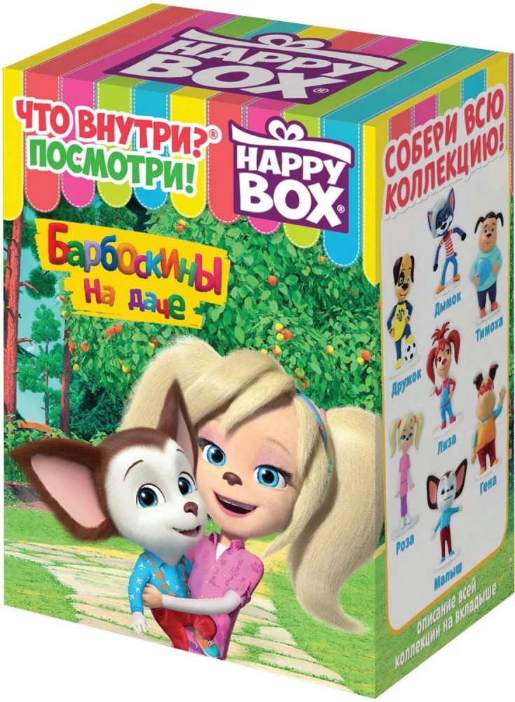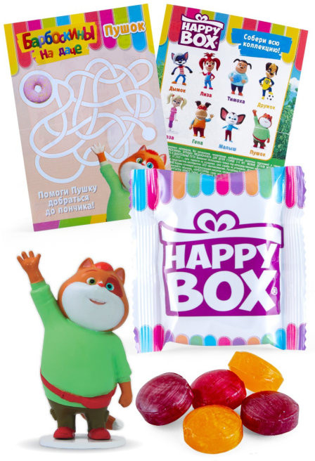 Happy box Карамель с фигуркой «Барбоскины»В данный момент этот товар отсутствует в продаже. Возможно, у нас найдется аналогичный или похожий товар здесь. Уникальный коллекционный набор с персонажами популярного одноименного мультфильма. Коллекция состоит из 8 больших и ярких игрушек. Помимо главных персонажей, в коллекции представлено два новых героя, которые появились в полнометражном мультфильме — коты Дымок и Пушок. Фигурки изготовлены из улучшенного пластика, благодаря которому они гладкие, гибкие и даже немного гнутся. |