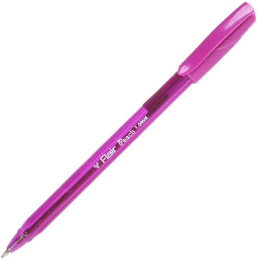 Хорошая удобная ручка, пишет мягко, был защитный колпачок, фиолетовый цвет яркий.