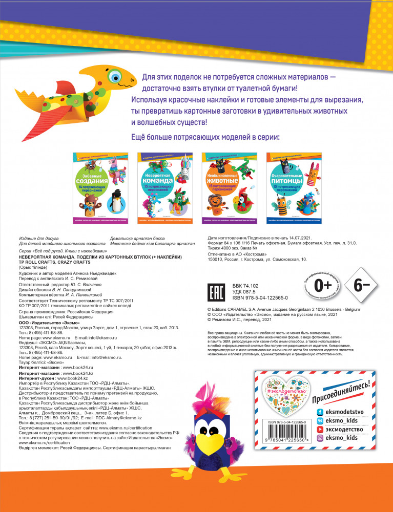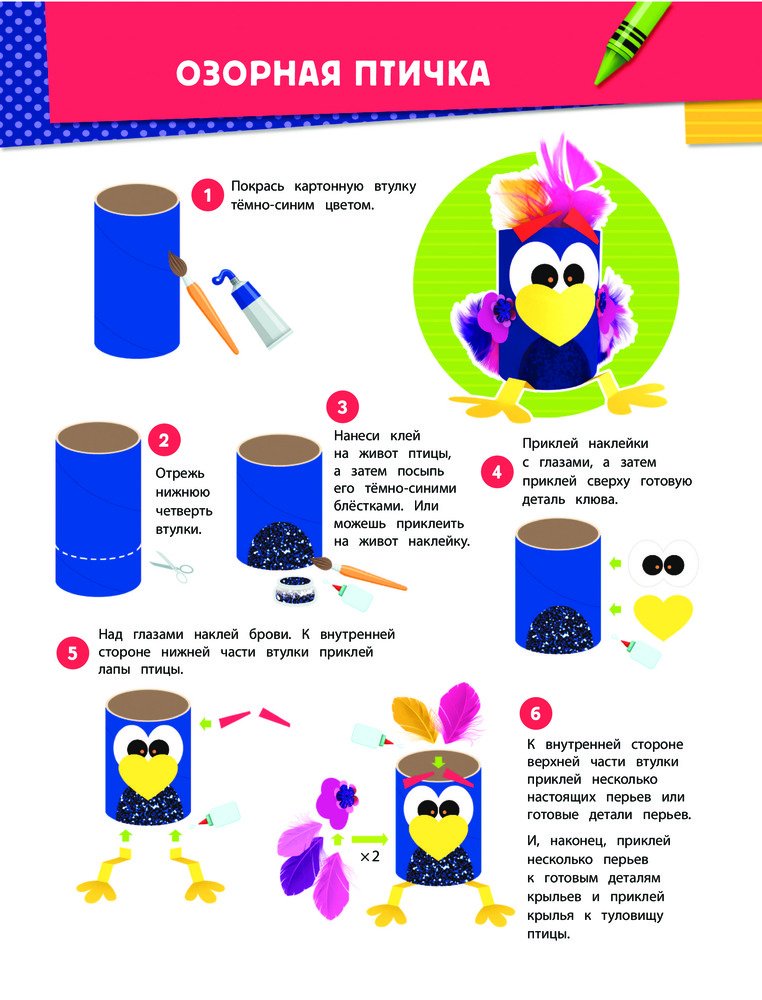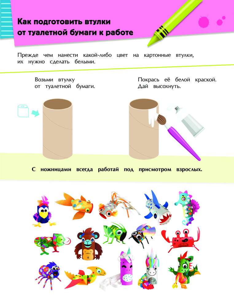Серия: Всё под рукой. Книги с наклейками Для этих поделок не потребуется сложных материалов — достаточно взять втулки от туалетной бумаги! Используя красочные наклейки и готовые элементы для вырезания, ты превратишь картонные заготовки в удивительных животных и волшебных существ! |