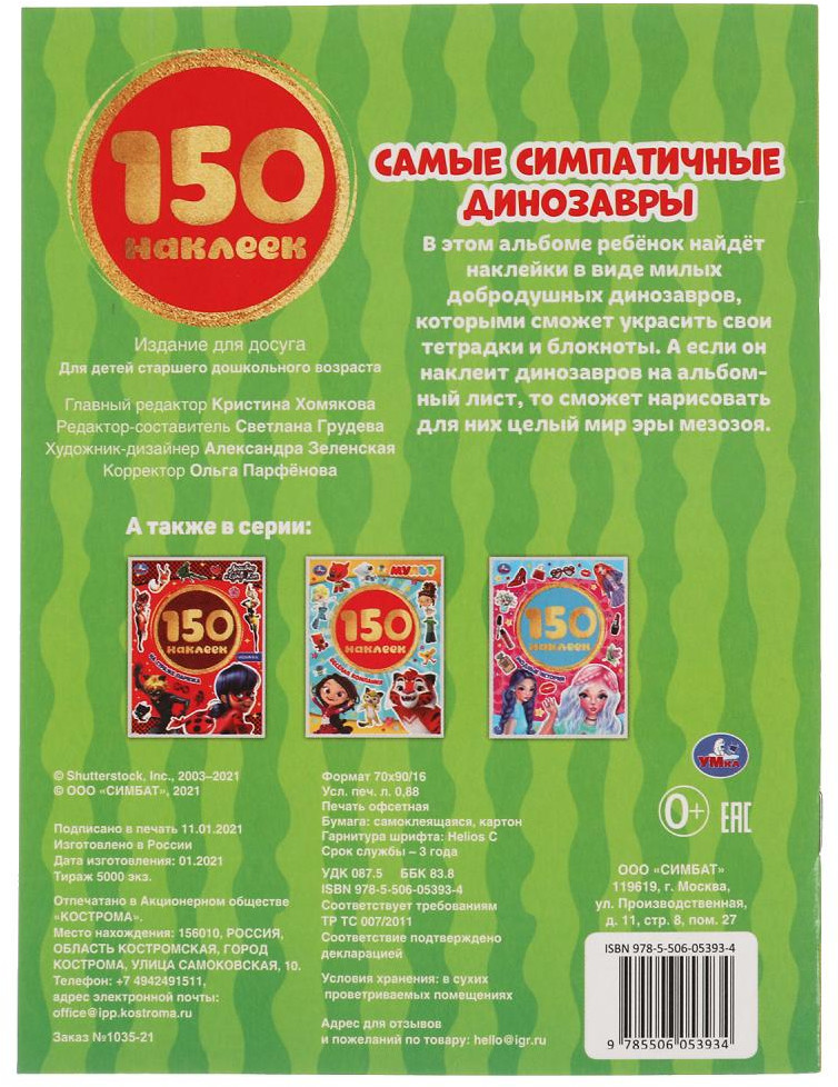 Серия: Альбом 150 наклеек А5 Альбом наклеек «Самые симпатичные динозавры» ТМ «УМка» станет прекрасным подарком для маленьких любознаек: |
