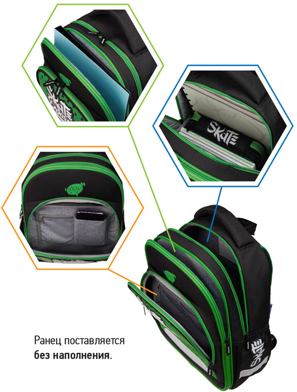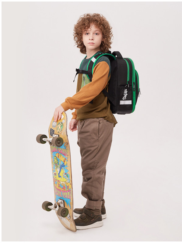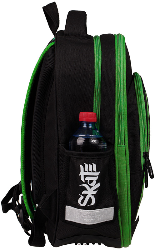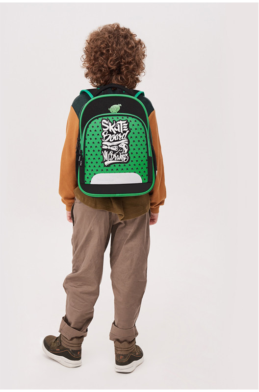 Эргономичный полужесткий ранец серии «Flash» рассчитан на учеников младшей и средней школы. Передняя часть и спинка ранца жесткие, а боковые панели уплотнены слоем спонжа. Благодаря эргономичной вентилируемой спинке, а также регулируемым по длине лямкам, нагрудному креплению он плотно фиксируется на спине ребенка. В ранце предусмотрены 2 отделения, 1 передний карман на молнии, 2 боковых кармана. Внутри имеются органайзер, дополнительное отделение для учебных пособий и именная карточка.