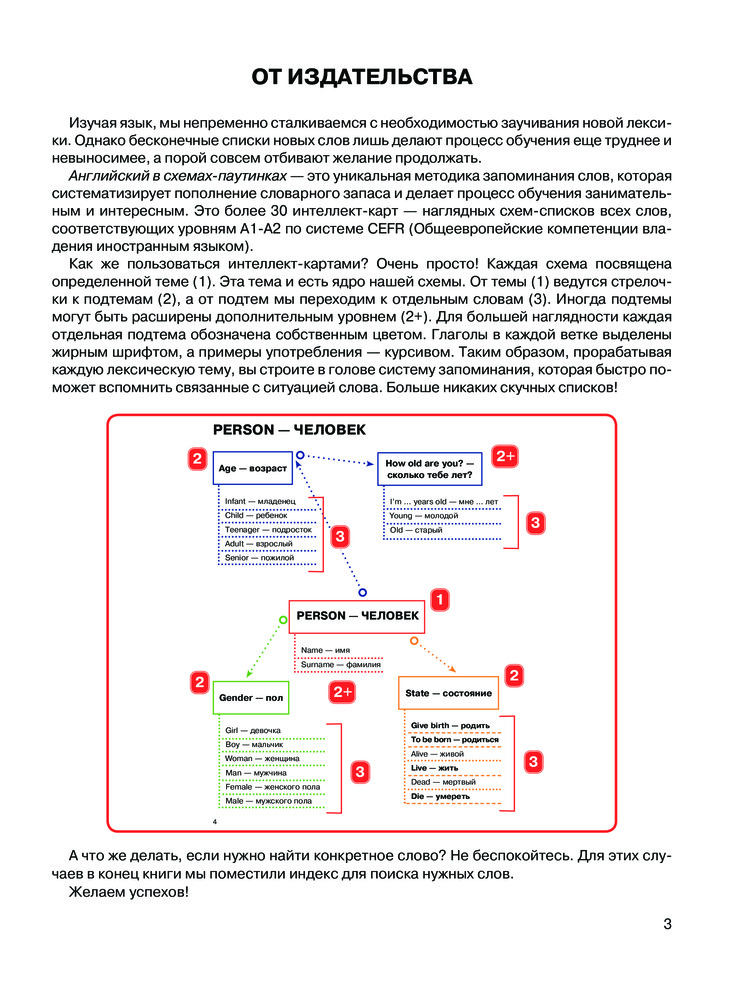 Английский в схемах-паутинках. Уровни А1-А2В данный момент этот товар отсутствует в продаже. Возможно, у нас найдется аналогичный или похожий товар здесь. Серия: Лучшие интеллект-карты Английский в схемах-паутинках — это уникальная методика запоминания слов, которая систематизирует пополнение словарного запаса, делая процесс обучения легким и увлекательным. Пособие содержит более 1000 слов, соответствующих уровню А1-А2, которые наглядно представлены в тематических схемах, и алфавитный указатель, помогающий быстро найти необходимое слово в интеллект-картах. |