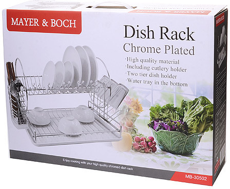 Mayer & Boch Сушилка для посуды настольнаяВ данный момент этот товар отсутствует в продаже. Возможно, у нас найдется аналогичный или похожий товар здесь. Двухъярусная сушилка для посуды выполнена из высококачественной нержавеющей хромированной стали и пластика. В сушилке предусмотрены отделения для тарелок, чашек и столовых приборов. Благодаря конструкции с вместительным поддоном для сбора воды, Вы не будете тратить время на вытирание посуды после мытья. Стальная часть конструкции защищена от коррозии хромированным покрытием, что гарантирует ей продолжительное время эксплуатации и эстетичный внешний вид. Сушилка для посуды станет незаменимым помощником на кухне. Компактность сушилки позволит расположить ее по Вашему усмотрению — на свободном крыле мойки, на столешнице или в навесных шкафах кухонного гарнитура. Оригинальный и современный внешний вид идеально дополнит интерьер кухонного пространства. |