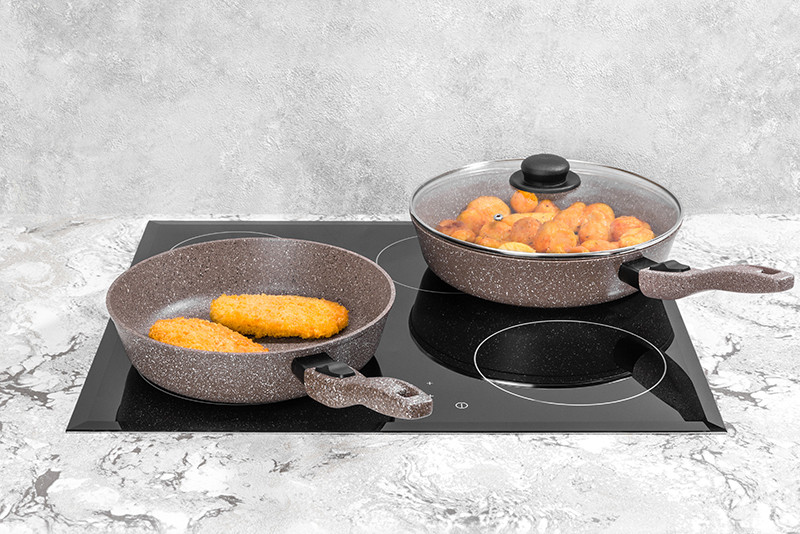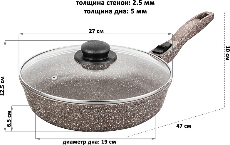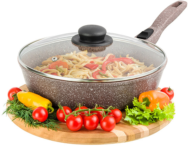 Elan Gallery Сковорода с крышкой и съёмной ручкой «Коричневый мрамор»