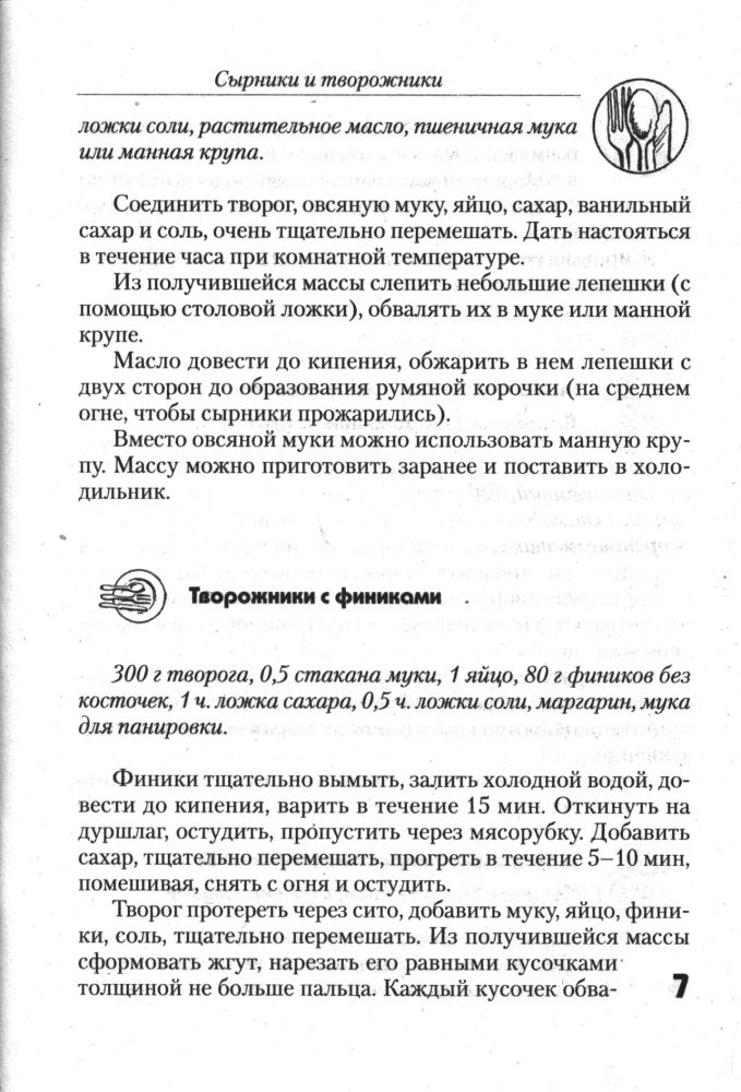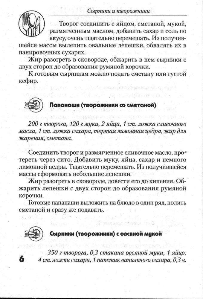 Книжка маленькая, удобная, страницы тонкие. Без картинок. Узнала много интересной информации о сырниках и творожниках. Никогда не думала, что может быть столько их разновидностей, что их можно жарить, тушить и варить. Один рецепт уже попробовала, остальные на очереди :)
