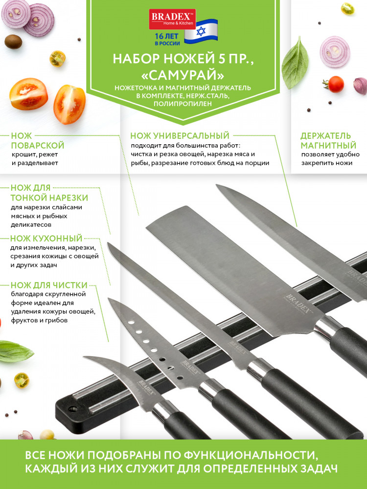 Все ножи подобраны по функциональности, каждый из них служит для определенных задач: