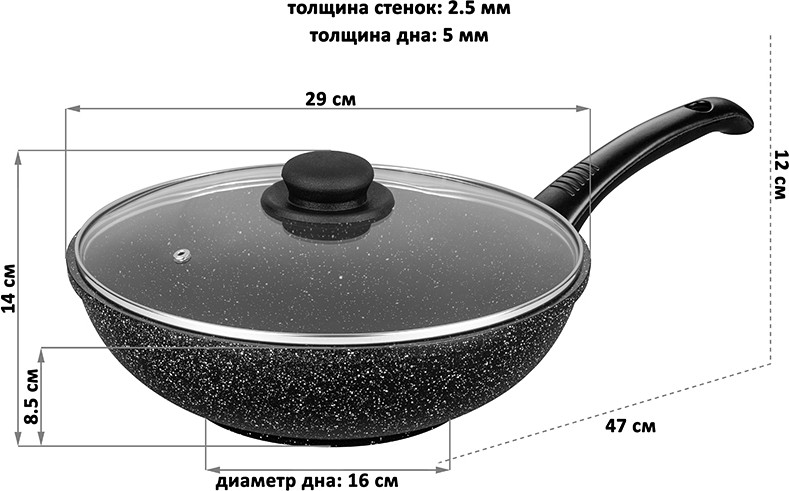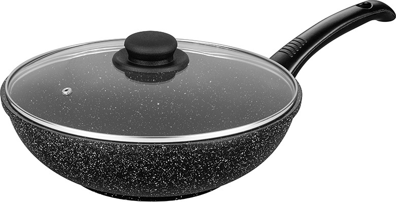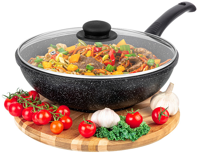 Сковорода-вок «Гармония вкуса» с крышкой изготовлена из литого алюминия в России и имеет ультрапрочное двухслойное антипригарное покрытие. Главное преимущество покрытия — устойчивость к царапинам и износу. Покрытие безопасно для человека и не содержит PFOA или других вредных веществ.