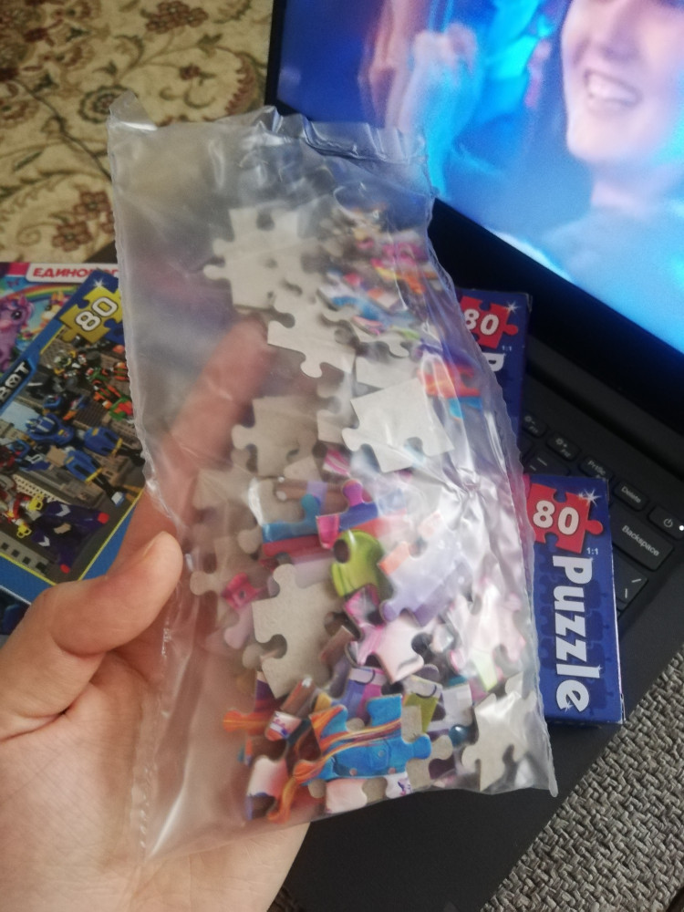 В описании указан размер упаковки 38*27см, я думала там большие пазлы, а пришла малюсенькая коробочка и внутри мелкие детали. Очень жаль.