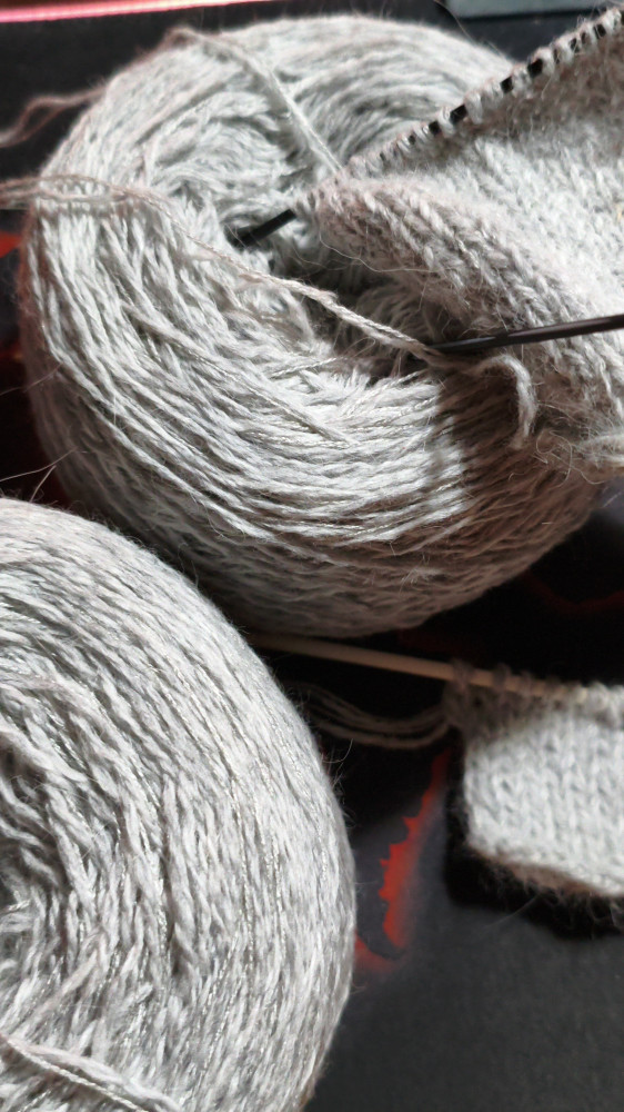 вяжется приятно, хорошо скользит на спицах. Сначала показалось, что голимая синтетика, подожгли - чувствуется запах горелой шерсти. не сильно пушистая. Думаю, после ВТО распушится.