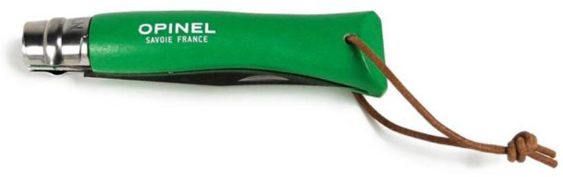 Нож Опинель №7 относится к категории складных туристических ножей. Он хорошо себя зарекомендовал не только в туристических походах, но и на рыбалке, в кемпинге. Складная конструкция делает этот нож особенно компактным и облегчает его транспортировку. Чтобы нож не мог открыться самостоятельно, он оборудован очень простым, но эффективным замком Viroblock. Этот механизм работает по принципу муфты: в нем имеется прорезь для лезвия, но если металлическое кольцо замка повернуть, то лезвие уже не сможет поменять свое положение. Замок работает как для сложенного, так и для открытого ножа.
