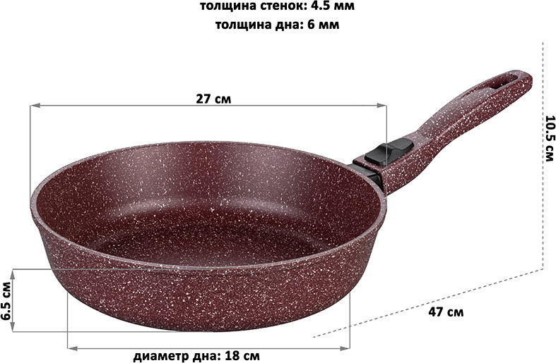Рекомендации по использованию: не нагревать без продуктов. Дайте посуде остыть, прежде чем помещать ее в воду. Использовать только деревянные и силиконовые лопатки. Не мыть с применением абразивных или щелочных моющих средств. Использовать в посудомоечной машине только в режиме «Эко». Можно использовать в духовом шкафу без ручки при температуре до 250 градусов. Не используйте съемную ручку, чтобы достать раскаленную сковороду из духового шкафа.