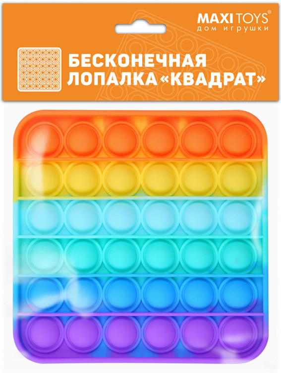 Pop It «Квадрат» — прекрасный подарок для того, чтобы весело провести время и поднять настроение. Каждый кружок при нажатии проваливается туда-обратно, и так бесконечное количество раз. С помощью бесконечной лопалки можно придумать различные игры.