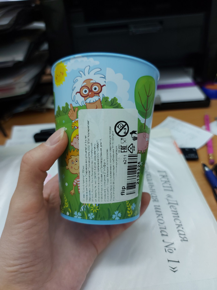 В целом хороший,обычный пластиковый стакан. Но минус в том, что наклейка производителя портит весь вид, если отклеить, то остаётся видимый липкий слой. Нужно искать выход как бесследно её отклеить. Наклейка Flip снимается идеально.