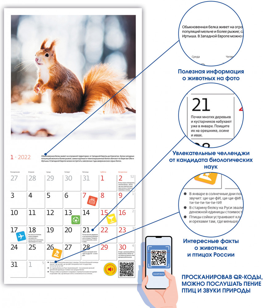 В данный момент этот товар отсутствует в продаже. Возможно, у нас найдется аналогичный или похожий товар здесь. Серия: Календарь-органайзер В этом красивом и познавательном календаре со звуковыми эффектами вас ждет подборка фотографий наиболее популярных и интересных животных России, а также интереснейшие факты о природе нашей страны и народные приметы.