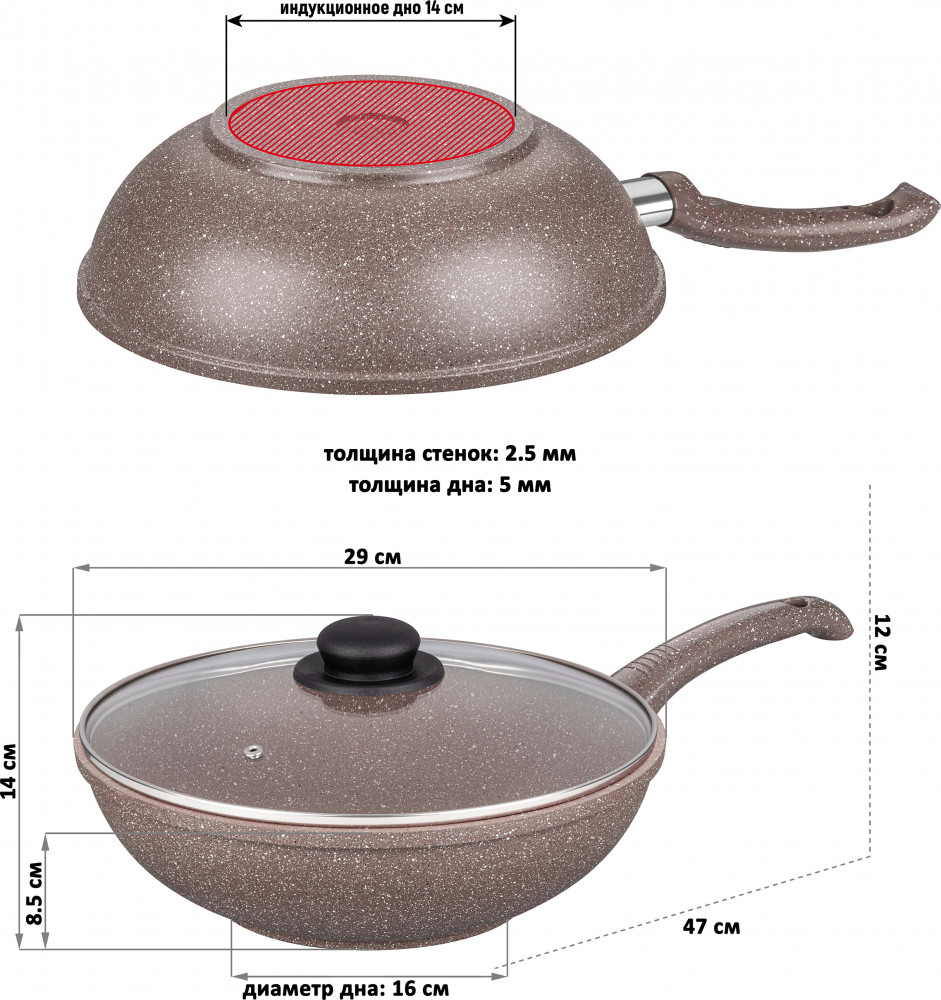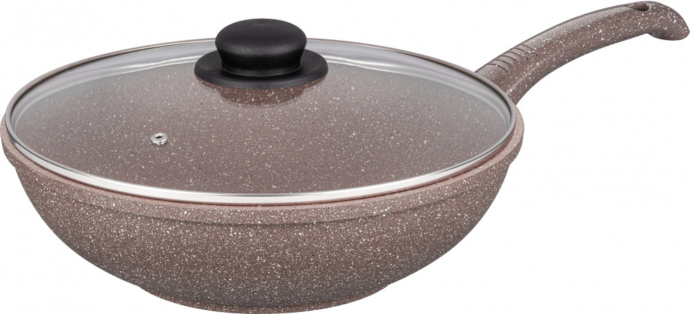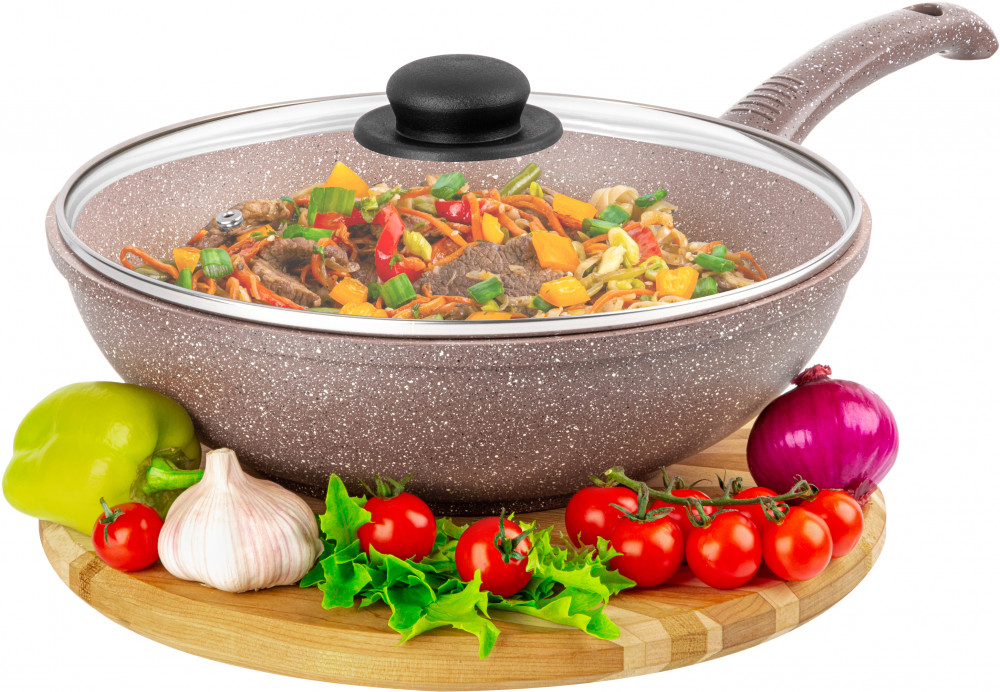 Сковорода-вок диаметром 28 см серии «Гармония вкуса» с крышкой изготовлена из литого алюминия. Ультрапрочное трехслойное антипригарное покрытие QuanTanium изготовлено ведущим разработчиком антипригарных покрытий Whitford. Покрытие QuanTanium имеет исключительную коррозионную и механическую устойчивость на истирание 8-10 тысяч циклов! Покрытие полностью безопасно и не содержит PFOA или других вредных веществ.